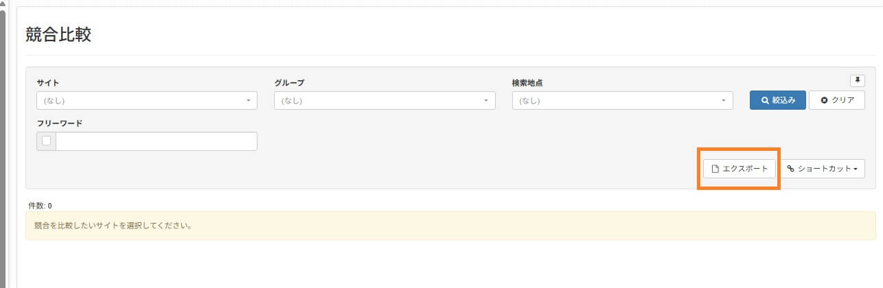 競合比較データは「エクスポート」ボタンからCSV形式で出力することができます。