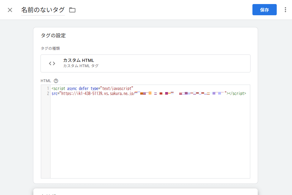 新規タグ設定の画面で名前とフォルダを設定し、「タグの設定」をクリックします。